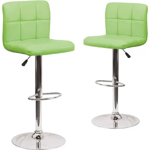 Let the plush quilted design of this this adjustable height barstool cradle you in comfort. The simple design allows it to seamlessly accent any area in the home. The easy to clean upholstery is an added bonus when stool is used regularly. The height adjustable swivel seat adjusts from counter to bar height with the handle located below the seat. The chrome footrest supports your feet and relieves pressure from your legs while also providing a contemporary chic design. To help protect your floors, the base features an embedded plastic ring. Not only is this stool stylish, but very comfortable providing you with an amazing sitting experience.