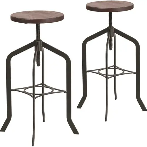 This rustic and industrial style stool will add a modern industrial appearance to your home, work space, or entertainment area. This stool boosts a wood seat and features a sturdy metal frame with a black powder coated finish. The swivel seat adjusts in height to accommodate different users. This stool sits on plastic protective floor glides to prevent scratching and help prevent damage to flooring. The unique design of this backless stool will completely transform the area.