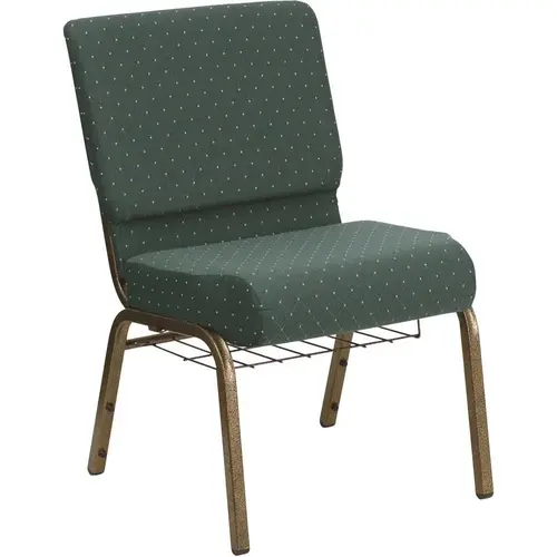This beautiful, supremely comfortable padded chair will ensure your guests have an enjoyable experience whether you're hosting an all-day seminar, serving a 10 course meal or delivering your most inspirational sermon. Unlike pew seating, these chairs give you the capability to create different seating configurations as often as you wish making them an ideal seating solution for any venue. The auditorium chair with 4 in. thick seat are generously padded and covered in durable fabric upholstery. The spacious, 21 in. wide seat has a waterfall edge that provides an extra level of comfort by reducing pressure on your attendees' legs. A convenient book pouch on the back of the chair keeps seminar materials, bibles or hymn books readily available and a book rack under the seat gives everyone a place to store their personal belongings. Its sturdy 16-gauge steel, copper vein frame, with gracefully angled legs, has been tested to hold up to 800 lbs. and plastic rocker glides protect your floor by sliding smoothly when you need to move the chair. This commercial side chair is an excellent choice for event venues, hotel lobbies, banquet halls, conference facilities and worship centers.