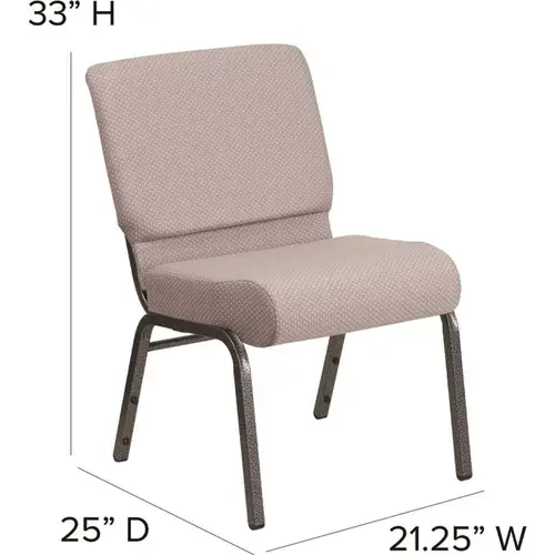 This beautiful, supremely comfortable padded chair will ensure your guests have an enjoyable experience whether you're hosting an all-day seminar, serving a 10 course meal or delivering your most inspirational sermon. Unlike pew seating, these chairs give you the capability to create different seating configurations as often as you wish making them an ideal seating solution for any venue. The upholstered stack chair with 4" thick seat are generously padded and covered in durable fabric upholstery. The spacious, 21" wide seat has a waterfall edge that provides an extra level of comfort by reducing pressure on your attendees' legs. A convenient book pouch on the back of the chair keeps seminar materials, bibles or hymn books readily available. Its sturdy 16 gauge steel, copper vein frame, with gracefully angled legs, has been tested to hold up to 800 pounds and plastic rocker glides protect your floor by sliding smoothly when you need to move the chair. This commercial side chair is stackable for easy storage making it an excellent choice for event venues, hotel lobbies, banquet halls, conference facilities and worship centers.