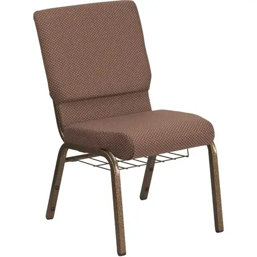 This beautiful, supremely comfortable church chair will ensure your guests have an enjoyable experience whether you're hosting an all-day seminar, serving a 10 course meal or delivering your most inspirational sermon. Unlike pew seating, these chairs give you the capability to create different seating configurations as often as you wish making them an ideal seating solution for any venue. The chair's 4.25"cushioned back and seat are generously padded and covered in durable fabric upholstery. The seat has a 4.25" waterfall edge that provides an extra level of comfort by reducing pressure on your attendees' legs. A convenient book pouch on the back of the chair keeps seminar materials, bibles or hymn books readily available and a book rack under the seat gives everyone a place to store their personal belongings. Built-in ganging brackets connect your chairs and maintain nice, straight rows. Its sturdy 16 gauge steel, gold vein frame, with gracefully angled legs, has been tested to hold up to 800 pounds and plastic rocker glides protect your floor by sliding smoothly when you need to move the chair. This chair is stackable for easy storage making it an excellent choice for event venues, hotel lobbies, banquet halls, conference facilities and worship centers.
