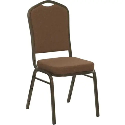Make an impressive presentation in your banquet hall when clients come to visit your facility with these ballroom chairs. Built for the commercial industry these popular crown back banquet chairs have been tested to hold up to 500 pounds. With a high seating capacity these stack chairs are perfect for the event rental business. This standout hospitality chair can be used as is and still command attention or be dressed up for formal events by placing a chair cover over it. The chair is cushioned with 2.5" thick CAL 117 fire retardant foam and is covered in durable upholstery for high usage. The sturdy frame with gracefully angled legs are made of 16 gauge steel in a lasting powder coated finish. Double support braces reinforce the frame to give it great strength and durability. Bumper guards prevent scratches on the frame when stacked (up to 15 high) and non-marring floor glides protect your floor by sliding smoothly when you need to move the chair. This multi-use stacking upholstered stack chair is an excellent option for churches, banquet halls, training rooms, hotels, convention centers and schools. Add banquet chairs to your home dining table to add a contrasting look to your dining room or kitchen.