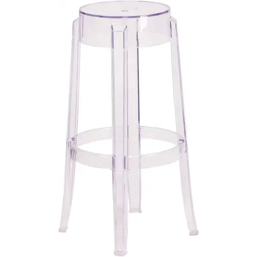 Whether you need seating for the bar area or game room in your home or want to create a breathtaking look in your restaurant or event venue, this versatile backless bar height clear stool is just right for the job. The transparent crystal finish will lighten up any room and provide sophistication to your space. Outfit your modern indoor or outdoor dining area with this transparent polycarbonate stackable stool with a drain hole seat. The raised, drain hole seat is easy to clean and ensures guests are at a comfortable height to enjoy your signature drinks, appetizers, entrees, and desserts. The built in foot ring promotes good posture and relieves pressure from the legs. With the added benefit of being able to stack up to 4 high, it provides the perfect type of seating when you want a clutter free floor.