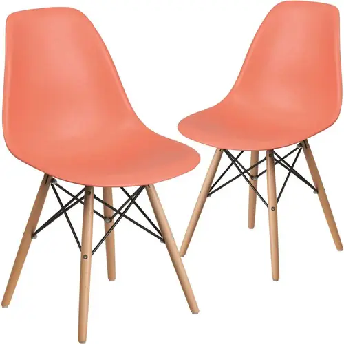 Adding seating around the home has never been easier than with this versatile mid-modern century side chair. Bring new life to your dining table, reception area or office or accentuate your living room with a pair of these versatile accent chairs. Play around with various colors to complement various spaces around your home. These molded chairs feature a waterfall seat design to keep waiting guests and clients comfortable. The durable matte plastic molded chair and geometric wooden legs with metal bracing add an artistic appeal. Bring your office, waiting room, living room, sitting room or den into the new century with these side accent chairs. These lively plastic side chairs will have students coming into the library more often for study groups and classroom assignments.