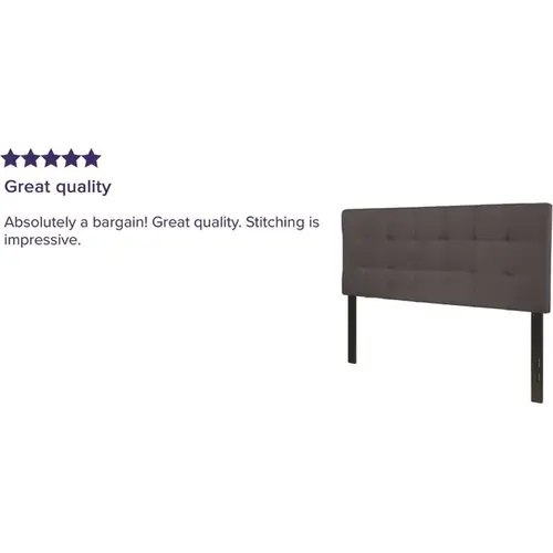 If you like reading or using your tablet or laptop in bed, you need a headboard to provide extra support. A headboard gives your room a very personal touch and allows you to show off your style. This gorgeous dark gray full headboard features button tufting and a diamond stitch pattern design, fabric upholstery, and includes adjustable metal bed rail slots. The slim panel will make your room feel more spacious. Having just a headboard will provide you with floor space and makes it easy to make up the bed. Whether you're updating your master bedroom, guest room or furnishing your first apartment or home, this headboard will give a fresh, on-trend look to your space.