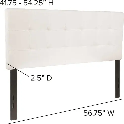 If you like reading or using your tablet or laptop in bed, you need a headboard to provide extra support. A headboard gives your room a very personal touch and allows you to show off your style. This gorgeous white full headboard features button tufting and a diamond stitch pattern design, fabric upholstery, and includes adjustable metal bed rail slots. The slim panel will make your room feel more spacious. Having just a headboard will provide you with floor space and makes it easy to make up the bed. Whether you're updating your master bedroom, guest room or furnishing your first apartment or home, this headboard will give a fresh, on-trend look to your space.