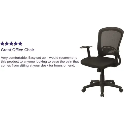 This decorative black mesh back office chair provides you the basic function needed to complete your everyday tasks at work or home. Mid-back office chairs are the logical choice for performing an array of tasks. A mid-back office chair offers support to the mid-to-upper back region. The contoured seat dissipates pressure points for greater comfort. Chair easily swivels 360 degrees to get the maximum use of your workspace without strain. The pneumatic adjustment lever will allow you to easily adjust the seat to your desired height.