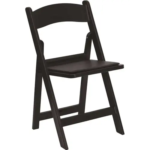 The Black Resin Folding Chair combines comfort and elegance that looks good at all your special events, whether it's a backyard barbeque, a formal banquet or beach wedding. This chair is made from ultra-strong resin that's very lightweight, yet extremely strong and can hold up to 1000 pounds making this portable folding chair perfect for any social event, your home office or remote learning space. The smooth frame is double braced for added stability and the front brace can be used as a footrest. The color of the frame is the same all the way through, so you don't have to worry about nicks and scratches. No re-painting or staining is ever needed; your chairs will look great for years to come. The chair comes with a detachable, washable, waterproof seat cushion filled with fire retardant foam. The easy to clean, durable design of these chairs makes them the ideal choice for indoor and outdoor use. The chairs are portable and fold compactly to transport and store.