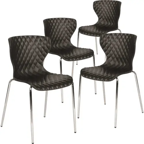 Bring excellent, reliable seating to any modern dining area, waiting room or office with this black plastic stacking chair. Highlighted with a diamond quilted pattern, this chair offers plenty of style. It's perfect for use as an accent side chair in waiting areas, cafes, lounges and casual restaurants. This chair boasts a waterfall seat to help reduce leg strain and provide superior comfort for your guests during their stay. No place is off limits as this quilted plastic stack chair will hold up in a classroom, conference room, restaurant dining room or around the home.
