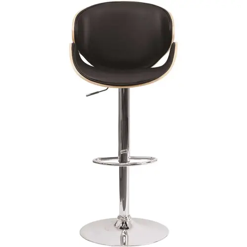 If you're looking for unique seating for your breakfast bar or kitchen island the beech bentwood barstool with curved seat is a great fit . The bentwood frame is made from durable Beechwood. The swivel stool's curved back and seat are padded with 2" of foam and upholstered in black vinyl. Easily raise the height adjustable swivel seat from counter to bar height using the gas lift handle, located just below the seat. The chrome base and footrest complement the stool's modern design and an embedded plastic ring in the base protects your floor by sliding smoothly when you need to move the stool. Keep this stool looking great with a solvent and water based cleaner such as foam. Designed for residential use, this barstool is an excellent choice when you want a contemporary look for your home.