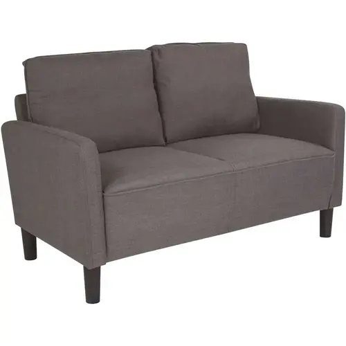 The sleek design of dark gray loveseat with extended side panels will add a stylized look to your home furnishing. Oversized back cushions are removable for cleaning and have a hook and loop system to keep cushions in place. The durable fabric upholstery in warm gray tones adds comfort to your room. Keep floors dust free with high legged furniture that makes it easier to sweep or vacuum underneath. Clean up spills and other messes with a water based cleaner. For your library or den, having two chairs makes an easy conversational setting. Whether you use in your home library or living room, the plush cushions and padded track arms will have you cozied up.