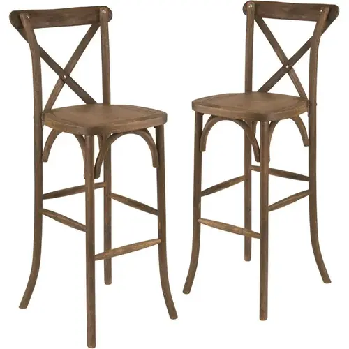The Cross Back Barstool creates a charming and inviting ambiance with its curved lines and smooth finish. The designer cross back adds a modern, yet classic appeal to your dining room. Constructed of beechwood and a beautiful finish, this barstool is very lightweight, yet extremely strong and wobble-free. These beautiful barstools ship fully assembled, can hold up to 350 pounds and can be stacked 4 high for storage. Designed for commercial and residential use, this durable and attractive bistro style stool is a great choice for your restaurant or dining room at home.