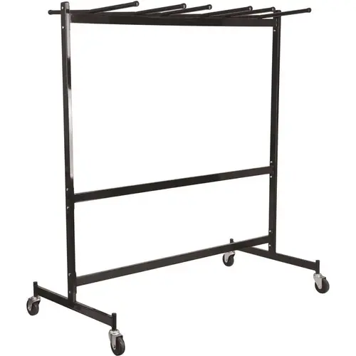 This combination dolly will save you time and effort by easily transporting both chairs and tables, using the same dolly. The hanging design allows for maximum storage when your space is limited and is perfect for quickly setting up and breaking down banquets and other occasions. Depending on the type of folding chair, this unit is able to hold up to 42 chairs. Built-in rubber stoppers keep walls scratch-free and prevent chairs from accidentally sliding off. The bottom storage holds 72 in. - 96 in. L folding tables. Swivel casters easily glide across floors to make transporting your items effortless.