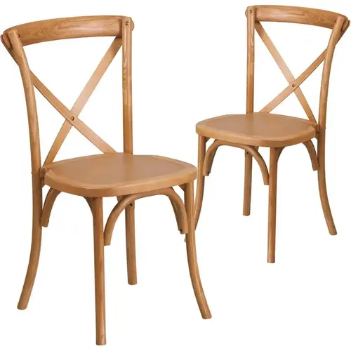 The Cross Back Chair creates a charming and inviting ambiance with its curved lines and smooth finish. The designer cross back adds a modern, yet classic appeal to your dining room. Constructed of ash wood and a beautiful finish, this chair is very lightweight, yet extremely strong and wobble-free. These beautiful chairs ship fully assembled, can hold up to 400 lbs. and can be stacked 8 high for storage. Designed for commercial and residential use, this durable and attractive bistro style chair is a great choice for your restaurant or dining room at home.