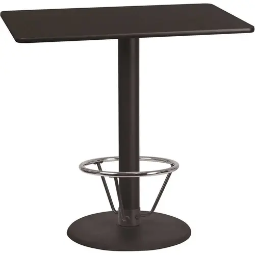 Complete your restaurant, break room or cafeteria with this table top and base configuration.This set is designed for commercial use to withstand the daily rigors in the hospitality industry. This set will also make a great option for your home as a dining table or in the rec room. The reversible top allows you to choose your color of choice and then affix to the base. Surface is heat, scratch and moisture resistant. Use a mild detergent and water, dry clean to keep your tables spotless. The convenient foot rest is the perfect accessory for a bar table, especially in the hospitality industry.Whether you are just starting your business or upgrading your furniture this table set will complete the look.