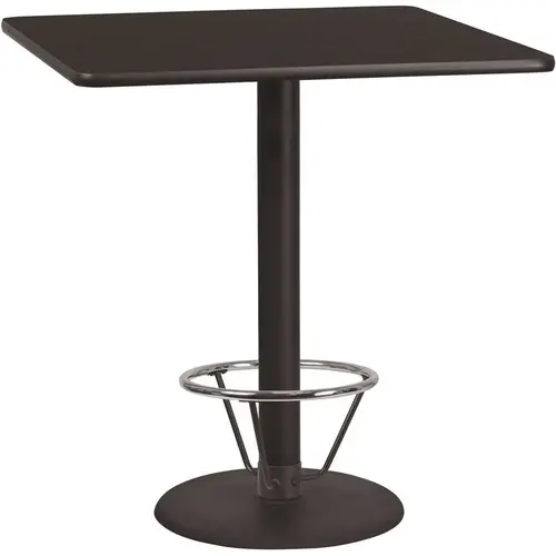 Complete your restaurant, break room or cafeteria with this table top and base configuration.This set is designed for commercial use to withstand the daily rigors in the hospitality industry. This set will also make a great option for your home as a dining table or in the rec room. The reversible top allows you to choose your color of choice and then affix to the base. Surface is heat, scratch and moisture resistant. Use a mild detergent and water, dry clean to keep your tables spotless. The convenient foot rest is the perfect accessory for a bar table, especially in the hospitality industry.Whether you are just starting your business or upgrading your furniture this table set will complete the look.