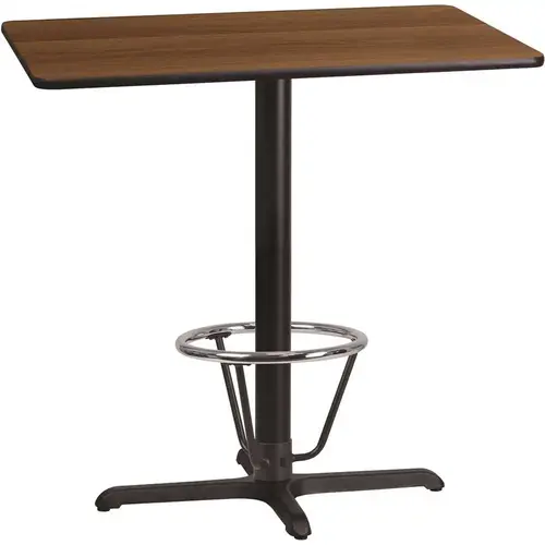 Complete your restaurant, break room or cafeteria with this table top and base configuration.This set is designed for commercial use to withstand the daily rigors in the hospitality industry. This set will also make a great option for your home as a dining table or in the rec room. The reversible top allows you to choose your color of choice and then affix to the base. Surface is heat, scratch and moisture resistant. Use a mild detergent and water, dry clean to keep your tables spotless. The convenient foot rest is the perfect accessory for a bar table, especially in the hospitality industry.Whether you are just starting your business or upgrading your furniture this table set will complete the look.
