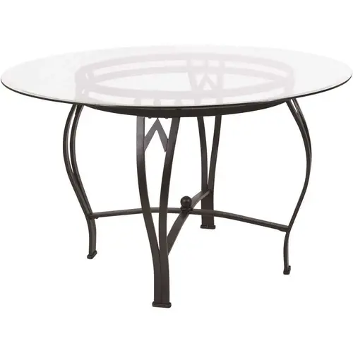 Building the perfect dining room is easier when you have a great foundation. Starting with an exquisite ornamental pedestal base this 45" glass topped dining table is off to a phenomenal start. Crowned by a round, thick glass top with beveled edges that shimmer in the light, this striking table will add an elegant aspect to your dining room or kitchen. On the practical side, floors are protected with floor glides in case of accidental movement or rearrangement. Gather family and friends to enjoy great meals around this dazzling table.