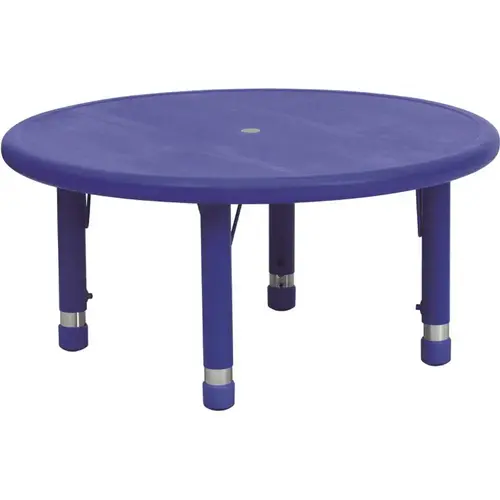 Interaction with other kids is essential for developing tots and a round activity table allows for this interaction to happen effortlessly. Perfect as a classroom table, the safety rounded edges reduce injury around rambunctious toddlers. The colorful kids table adds excitement to learning. Adjustable height legs give you the flexibility to raise or lower to accommodate kids up to the age of 7. Children appreciate having their own area within the common areas of the home. This activity table serves as a play table or kids dining table. Host birthday parties and play dates while accommodating 4 children around this round plastic table. Don't let spills ruin the fun, the low maintenance top is easy to clean. This plastic table is heavy-duty for use in preschools, daycares and playrooms. Pair with our plastic stackable school chairs for a complete table and chair ensemble.