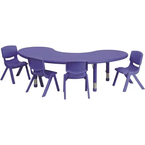 Set the ideal teacher-student arrangement with a moon-shaped activity table set that allows the teacher to be in the center. Designed for safety around rambunctious toddlers, the table has rounded corners and the plastic stack chairs are constructed of metal-free materials. This activity table set serves as a play and learning table for the classroom or home. Built for comfort, the shell chairs are a one-piece contoured designed to promote proper posture. Not only are these chairs designed properly, but they are lightweight so kids can feel independent by moving the chairs themselves. With this play activity table set setup in the playroom you're always prepared for play dates and birthday parties where the birthday boy/girl is front and center. Low in maintenance, these toddler chairs and activity table wipe clean with ease after snacks. This play activity table set will be your all purpose set for meal time, snacks, crafts and learning activities. As your child grows out of the 10" seat chair, replace with our 12" plastic stackable school chair or 13.25" plastic stackable school chair.