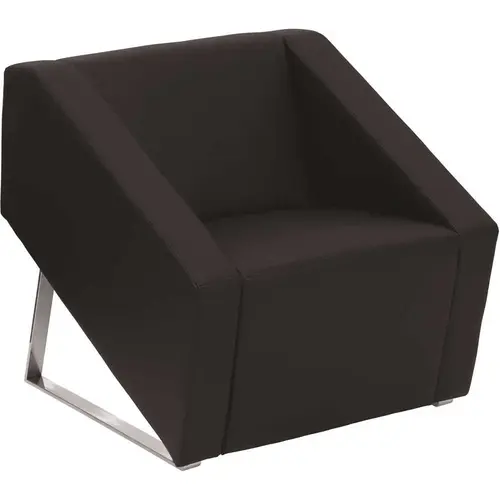 Create a comfortable setting for your guests that will make waiting and meetings more pleasant. This chair has an art deco design to fit in any modern office space. The contemporary styling of the chair with the slanted chrome base will add a dramatic statement to your reception area.