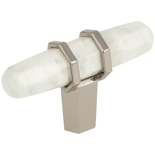 The Amerock BP36647MWPN Carrione 2-1/2 in (64 mm) Length Knob is finished in Marble White/Polished Nickel .