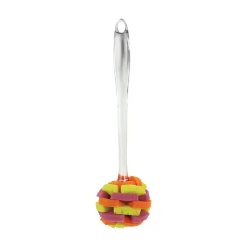 The Casabella Sponge Brush in plum, orange and lime is a multicolor dishwashing sponge designed to make your life easier and brighter even in your daily routine of washing dishes and cleaning. Casabella was created in the 1980s with the intent that dishwashing and cleaning products should not have to be boring and drab, but rather they can be fun, useful and colorful while using the highest quality materials. Additionally, the long handles are great for cleaning inside a bottle and tall glasses that are often harder to clean. The foam is engineered to be soft and makes it safe to be used on delicate glass surfaces. The sponge is formed in a ball shape that allows it to be more effective by cleaning surfaces and corners more thoroughly.