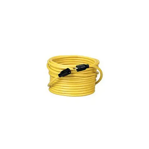 Locking 20 A plug, NEMA L5-20P to locking 20 A NEMA L5-20R receptacle. 12/3 SJTW 12 ga wire. Stranded conductors, bright yellow jacket and solid molded plugs. Not yellow jacket compound. 20 A/125 V. UL Listed.
