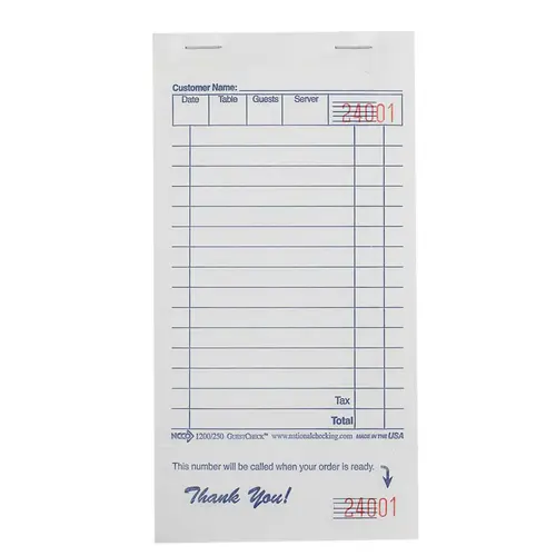 National Checking 3.5 Inch X 6.75 Inch 1 Part White 13 Line Guest Check 100 per Book - 10 per Pack - 10 per Case