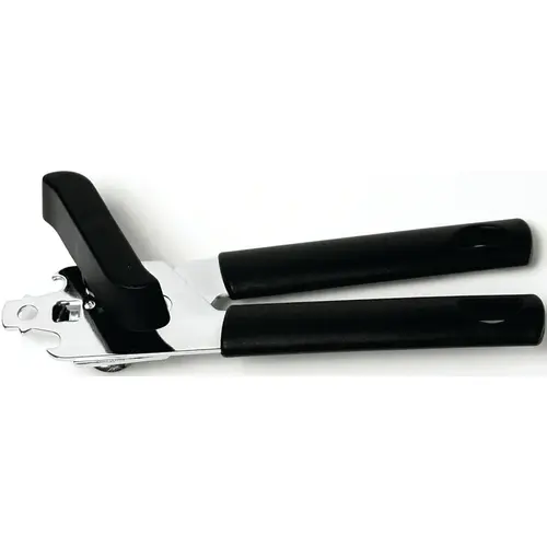 This 7.6 in can opener is the standard opener found in most kitchens. Open the handles, place on top of the can, close the handles, turn the knob to open cans. This can opener also has a built-in bottle top opener.