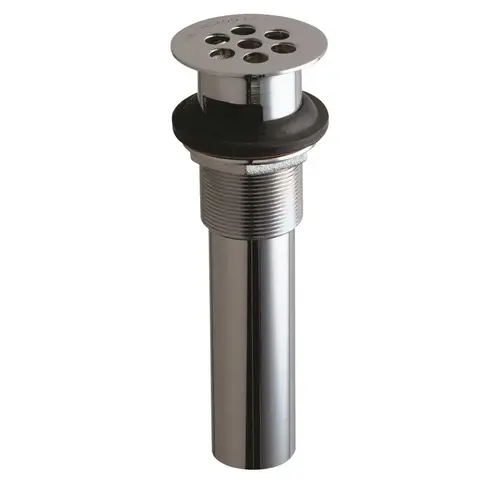 The Chicago Faucets 2-1/4 in. Strainer Waste in Chrome features brass construction for durability, and the strainer's chrome finish can help customize your bathroom for your convenience. This drain is designed with a 1 and 1/4 in. tail piece.