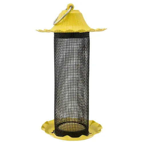 Little bit feeders holds 1/2 quart of seed. Large stainless steel hanging ring.
