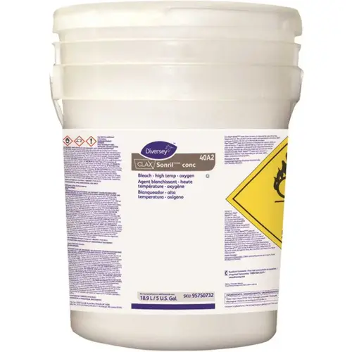 Concentrated laundry destainer, specially-formulated for use in commercial, healthcare and on-premise laundries. This product can be used for many types of fabric (except nylon) and for best results use at temperatures between 150° F to 170° F (65° C to 76° C). Use on white and colored fabrics.