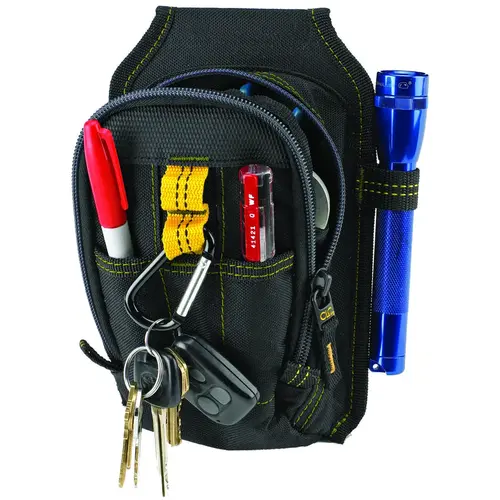 Our popular multi-purpose tool pouch has 9 pockets, including 7 in the main zippered compartment for added security, a carabiner and a flashlight loop.
