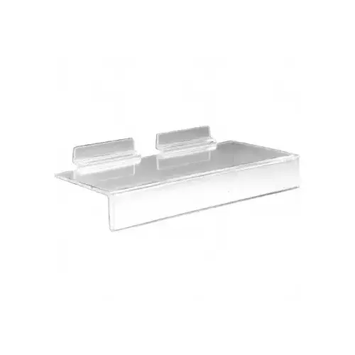 The CRL Clear Acrylic Shelves are four inches (100 millimeters) x 8 inches (203.2 millimeters) and are used for displaying merchandise on slatwalls. Because they're clear, they won't distract from merchandise. One model is straight, and one slotted for a sign card. Designed for use with innovative slatwall display systems used in many retail outlets. Slatwall Hardware is designed to accentuate the display of clothing, shoes and apparel accessories. Slatwall versatility allows the display to be rearranged in minutes, so exciting, creative displays can be set up over and over again.