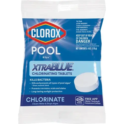 Long-lasting chlorinating tablets. Slow dissolving 6-in-1 formula. Kills bacteria. Controls algae, prevents corrosion, scale and metal staining. Makes water silky smooth. Includes built-in stabilizer to protect chlorine from sunlight degradation to last longer. Skimmer, feeder or floater application.