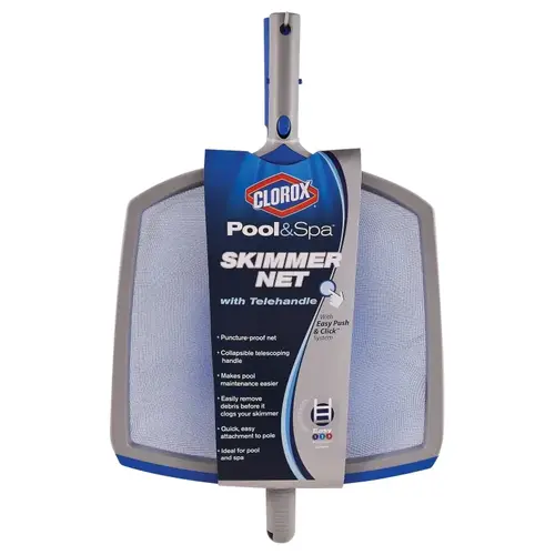 Punctureproof net. Collapsible telescoping handle makes pool maintenance easier. Easily removes debris before it clogs your skimmer. Quick and easy attachment to pole. Ideal for pool and spa.