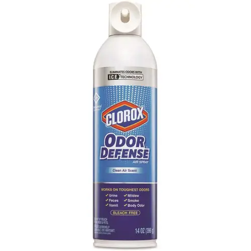 Tackle the toughest, smelliest odors with Clorox Commercial Solutions Clorox Odor Defense Air and Fabric Spray. With ICE Technology, Clorox Odor Defense is scientifically formulated to quickly identify, capture and eliminate odors from the air and on fabrics, leaving behind a clean air scent. This odor eliminator is specially formulated for hard and soft surfaces notorious for trapping odors. It handles odors on soft, absorbent surfaces like carpet and mattresses or hard, porous surfaces like grout. Odor Defense destroys the toughest odors, which include urine, vomit, feces, mildew, smoke and body odor, for up to 6-hours. Ideal for offices, day care centers, schools, hotels, restaurants and other commercial facilities. Enhance your cleaning process by actively eliminating odors between cleanings. Scent: Clean Air Scent; Physical Form: Liquid; Application: Odor Control; Capacity (Volume): 14 oz.