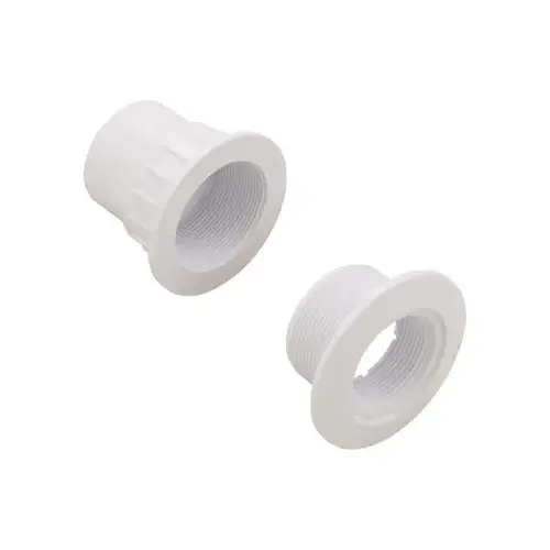 Wall return fitting for fiberglass pools, designed with a 1.5" FIP thread and white finish for secure water return up to 25 GPM. Made of durable PVC, includes nut for tight sealing, ensures reliable flow in chlorine-resistant systems, ideal for gunite or fiberglass setups with a sleek, unobtrusive look for pool circulation.Compatible with 1.5" Schedule 40 PVC pipes, fits fiberglass/gunite walls, per CMP specs.Features 1.5" FIP thread, 3-3/8" face diameter, constructed from UV-resistant white PVC with nut.Installs into 2-3/8" wall hole with nut, requires no gasket, threads directly to plumbing.Delivers steady flow with a tough, factory-spec design, keeping installs quick and pools efficient.