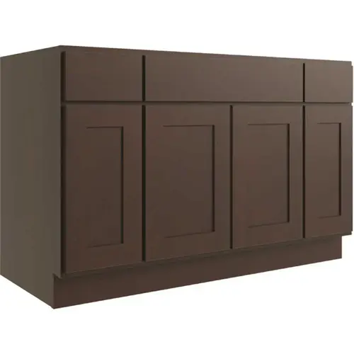 CNC Cabinetry Luxor 54" 4-Door Sink Base Cabinet, Shaker Espresso