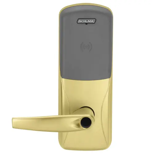 CO-200 Standalone Electronic Lock, Cylindrical, Privacy Function, Proximity Reader, Athens Style Lever, Less Schlage Standard Cylinder, Satin Brass