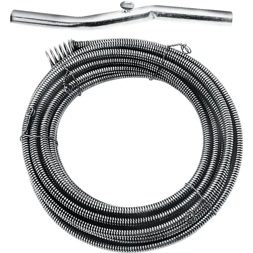 Designed for most medium household drains, this 1/2 in x 50 ft drain auger features a high-quality spring wire for excellent flexibility in tight bends. The design provides maximum thrusting action, even through strainer crossbars.