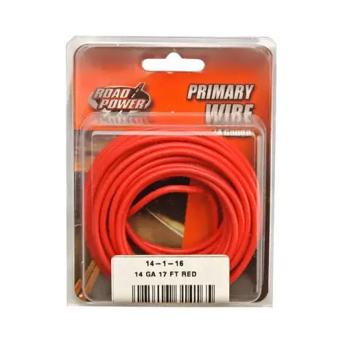 Road Power Electrical Wire, Wire Size: 14 AWG, Strands per Conductor: 19, Conductor Material: Copper, Stranded/Solid: Stranded, Sheath Material: PVC, Sheath Color: Red, Sheath Diameter: 0.116 in, 25/60 V, Operating Temperature: 60 deg C, 17 ft L