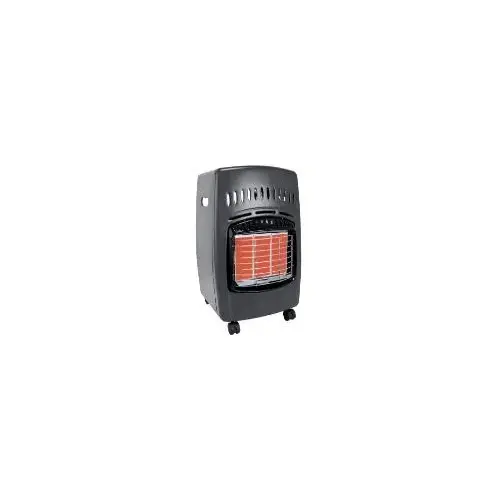 The Comfort Glow GCH480 cabinet heater is nearly the ideal utility heater. It runs off a 20 lb. propane(LP) cylinder tank that tucks neatly in the back. It offers 6K, 12K and 18K Btu heat choices you manually select. It has an ODS safety shut-off built in. Equipped with four sturdy wheels, the cabinet heater can be moved easily and placed safely in your choice of location. Front wheel locks keep the heater in place.