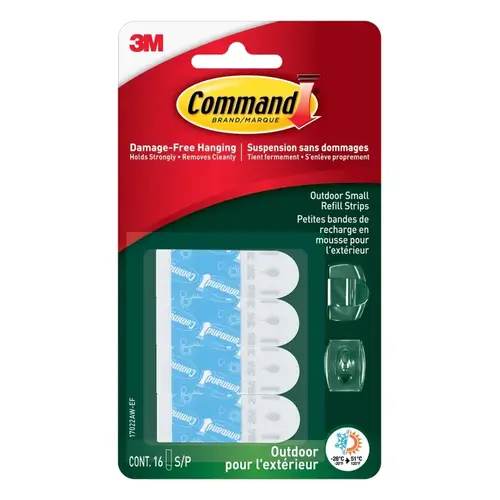 Command outdoor refill strips make it easy to reuse your Command outdoor hooks time and time again. These foam strips are specially designed to hold strongly outdoors. And like all Command products, they remove cleanly with no holes, marks, stains or sticky residue.