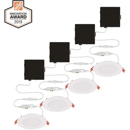 The Commercial Electric Ultra Slim Recessed Lighting Kits are the recessed lights of the future. Not only is each fixture is designed specifically for small spaces where H8 clearance is limited such as beams or DUC2RK, you can change the color temperature with a flick of a button. The integrated color changing switch is located on the cable so you can choose between a 3000, 4000 or 5000K temperature to best suit your needs. 3000K is perfect for relaxing, 4000K is the ideal choice for everyday affairs and 5000K is great for task lighting in a basement, hallway or work area. ENERGY STAR certified and Insulation Contact rated for direct contact with insulation, these lights won't overheat, do not require a bulky can and will last for years to come 50 000 hours or approximately 34-years if used for 4-hours/day to be exact. Wet rated and certified airtight, this 4 in. kit is perfect for your bathroom, drop ceilings, outdoor soffits and all general lighting applications.