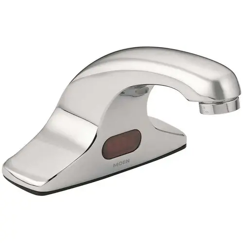 Moen M-Power Electronic Heavy-Duty Lavatory Faucet, 3/8 in Connection, Compression Connection, 0.5 gpm, Deck Thickness: 1-1/2 in, Spout Type: Low Arc, Spout Reach: 4-3/4 in, Spout Height: 4-1/2 in, Cast Brass, Chrome Plated, Number of Faucet Holes: 3, Faucet Centers: 4 in, Faucet Hole Size: 1, 2 in, Dimensions: 4-1/2 in H x 5-7/8 in W, Includes: 4 AA Battery, In-Line Filter, Mounting Hardware