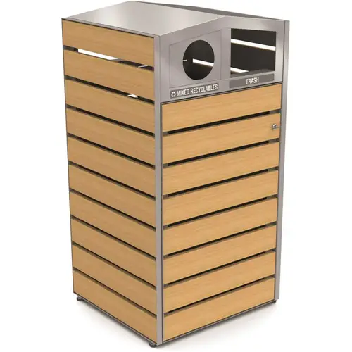 Woodview Double-Sided Recycling/Waste Container With Dome Lid, 48-Gallon