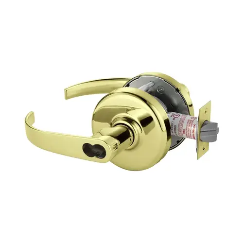 Grade 1 Entrance/Office Cylindrical Lock, Princeton Lever, D Rose, LFIC 6-Pin Less Core, Bright Brass Finish, Non-handed