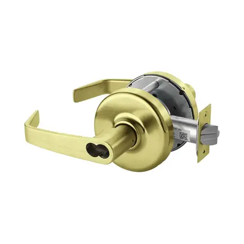 Grade 1 Storeroom/Closet Cylindrical Lock, Newport Lever, D Rose, LFIC 6-Pin Less Core, Satin Brass Finish, Non-handed